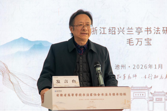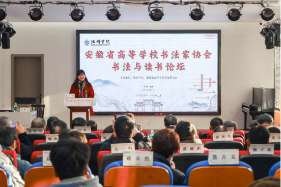 1月11日,由池州学院与安徽省高等学校书法家协会联合主办的“书法与读书”论坛在池州学院艺术与教育学院启幕。校党委委员、副院长张赛,安徽省高等学校书法家协会主席、安徽师范大学二级教授庄华峰出席开幕式,党委宣传部、科研处、学生处、艺术与教育学院主要负责人及论文作者代表、池州学院师生代表等五十余人参加开幕式。开幕式由安徽省高等学校书法家协会副秘书长康蕾主持。