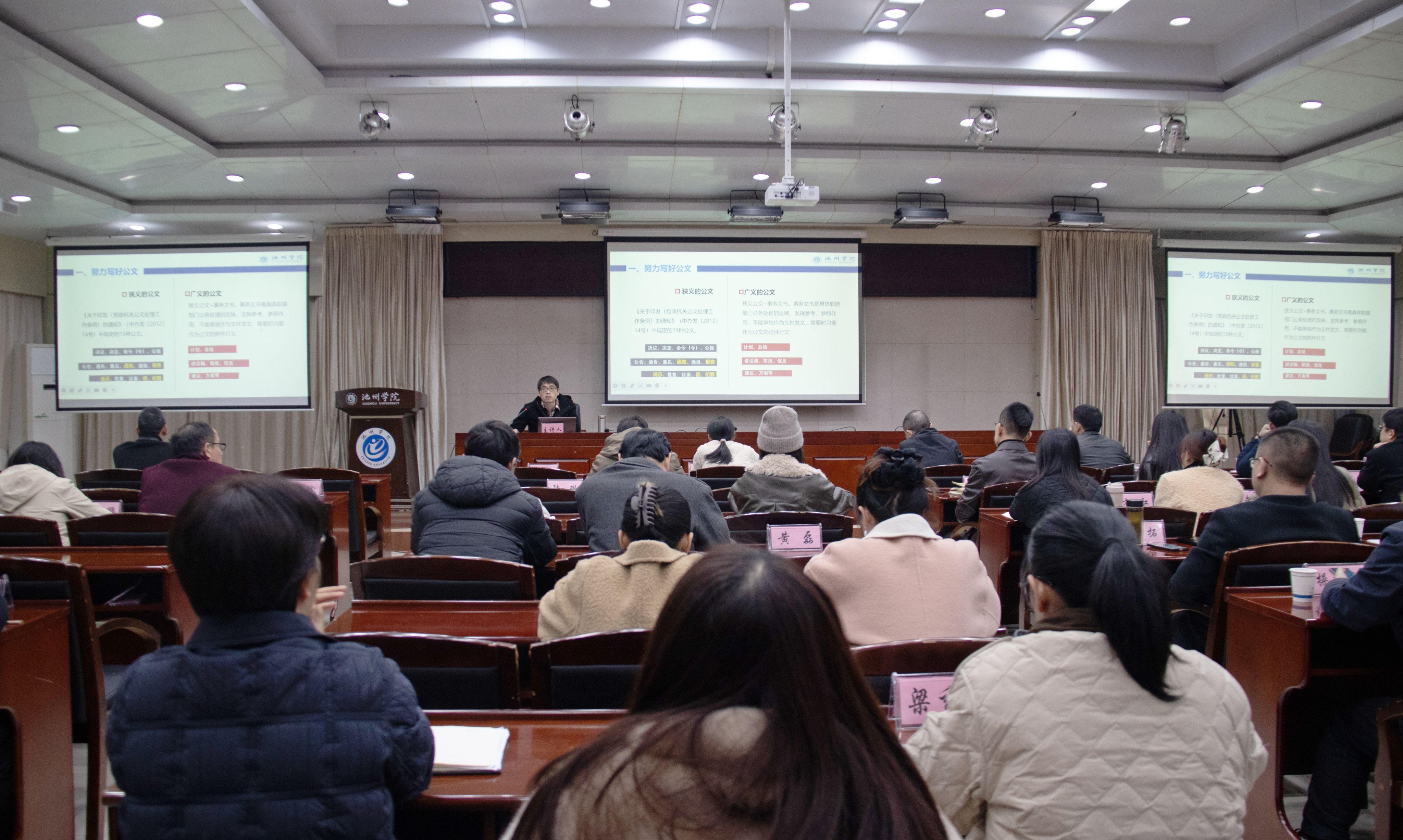 11月27日,我校2025年科级干部暨年轻干部能力提升第二期培训班第四讲在行政南二楼会议室举行。本次培训由机关党委书记、党委组织部副部长余丙南主持,办公室副主任陈周庆、党委宣传部新闻宣传科科长袁梦成分别围绕公文写作、会议组织和新闻宣传作专题授课。