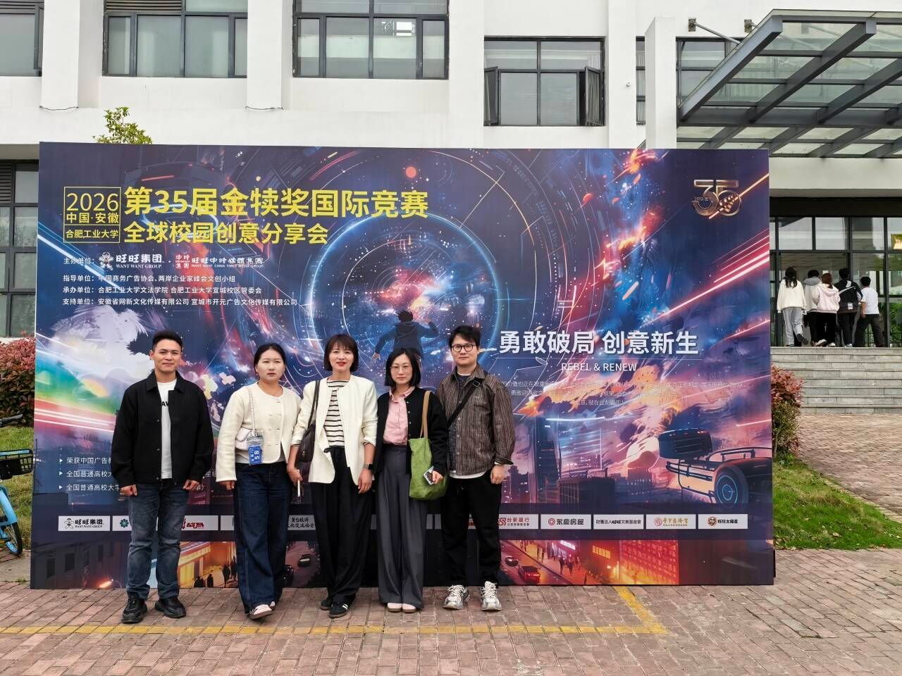 4月15日至17日,为深化专业实践教学改革,提升学科竞赛指导水平,文学与传媒学院郑珺、张媛媛、毕非易、陈宝华、程冉五位教师应邀赴合肥工业大学宣城校区,参加2026第18届全国大学生广告艺术大赛安徽赛区名家名师校园创意巡讲及第35届金犊奖国际竞赛全球校园创意分享会。
