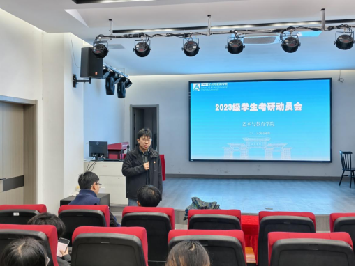 为激发2023级学生考研备考热情,科学规划考研征程,4月22日下午,艺术与教育学院在美术楼一楼会议室召开2023级学生考研动员会。院党委副书记李俊明和学院2023级超80名有考研意向的同学参会,会议由专职辅导员江枫主持。